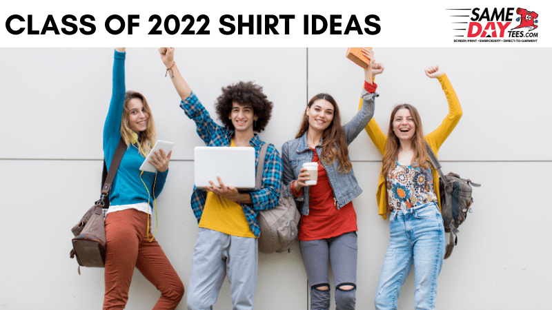 At Same Day Tees, we’re devoted to creating a look that you want. Bring your vision to life with our custom design tool, or one of our predesigned templates that you can customize. Our team can recommend the best printing technique for your design, and craft beautiful custom class of 2022 shirts using screen printing, embroidery, direct-to-garment, digital squeegee techniques and transfers. Whether you’re designing a shirt for you or a garment for your whole group, our professional team has your back. Design Your Own Shirt Today.